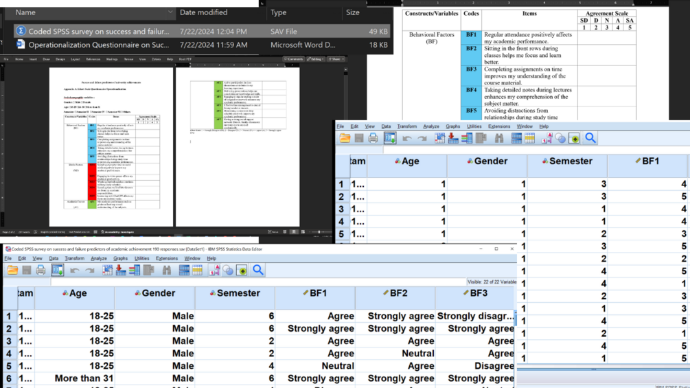 Likert scale survey questionnaire and data on academic, media and behavioral factors on achievement, Coded SPSS Data