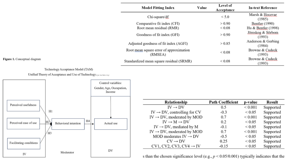 2) Research model templates (TAM, ETAM, UTAUT, FoMO) among others